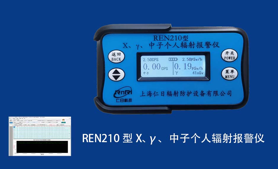 REN210型X、γ、中子個(gè)人輻射報(bào)警儀內(nèi)置SiPM和鋰玻璃晶體組成中子探測(cè)器儀器,采用反照率方式探測(cè)中子射線,同時(shí)也能探測(cè)X、γ射線。因此它可同事監(jiān)檢測(cè)X、γ、中子三種射線。能顯示工作場(chǎng)所的劑量當(dāng)量率和累積劑量,更換電池時(shí),日期及累積數(shù)據(jù)能永久保存。可選配RenRiPersonal個(gè)人劑量管理軟件,該軟件可存儲(chǔ)多個(gè)人的歷史數(shù)據(jù),能記錄日累積、月累積、年累積、輻照時(shí)長、計(jì)算平均劑量率、扣除或不扣除本底輻射,且以文字和圖譜的方式展現(xiàn)數(shù)據(jù)。廣泛應(yīng)用于環(huán)保、化工、水泥、煤礦、土木工程、石油、醫(yī)院、疾控、進(jìn)出口商檢、核電、加速器、機(jī)場(chǎng)、中子源庫和其他安檢、邊境控制海關(guān)檢測(cè)等
